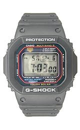 Multi-Band. Atomic Timekeeping (US, UK, Germany, Japan). Receives time calibration radio signals which keep the displayed time accurate. Auto receive function (6 times per day) Manual receive function Signal: US WWVB, UK MSF, Germany DCF77, Japan JJY40/JJY60 Frequency: US 60kHz, UK 60kHz, Germany 77.5kHz, Japan 40/60kHz. Tough Solar Power. Shock Resistant. 200M Water Resistant. Auto EL Backlight with Afterglow. World Time - 29 times zones (48 cities), city code display, daylight saving on/off. 5 Daily Alarms (1 with snooze). Countdown Timer. Measuring unit: 1/10 second Countdown range: 1 minute to 60 minutes. 1/100 second stopwatch. Measuring capacity: 999:59'59.99". Measuring modes: Elapsed time, split time, 1st-2nd place times. Hourly Time Signal Button Tone. Operation On/Off. Auto Calendar (pre-programmed until the year 2099). 12/24 Hour Formats. Accuracy: +/-15 seconds per month (with no signal calibration). Storage Battery Battery Power Indicator. Power Saving Function Approx. battery life: 8 months on full charge (without further exposure to light). Casio G-Shock Watch GWM5600-1CR